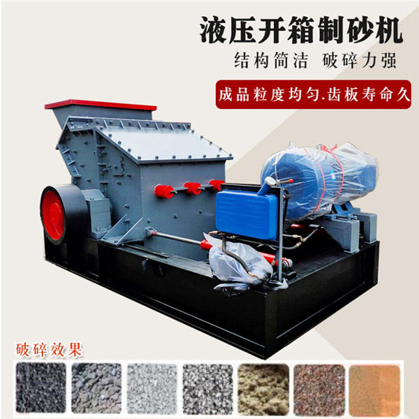 该液压开箱制砂机除了可以加工风化石外,还可适用于加工各种适合做建筑材料的料源,受料源影响和制约较小,灰岩、花岗岩、玄武岩、片麻岩、砂岩等各种岩石都可作为机制骨料的加工料源、其多样性和复杂性十分罕见.